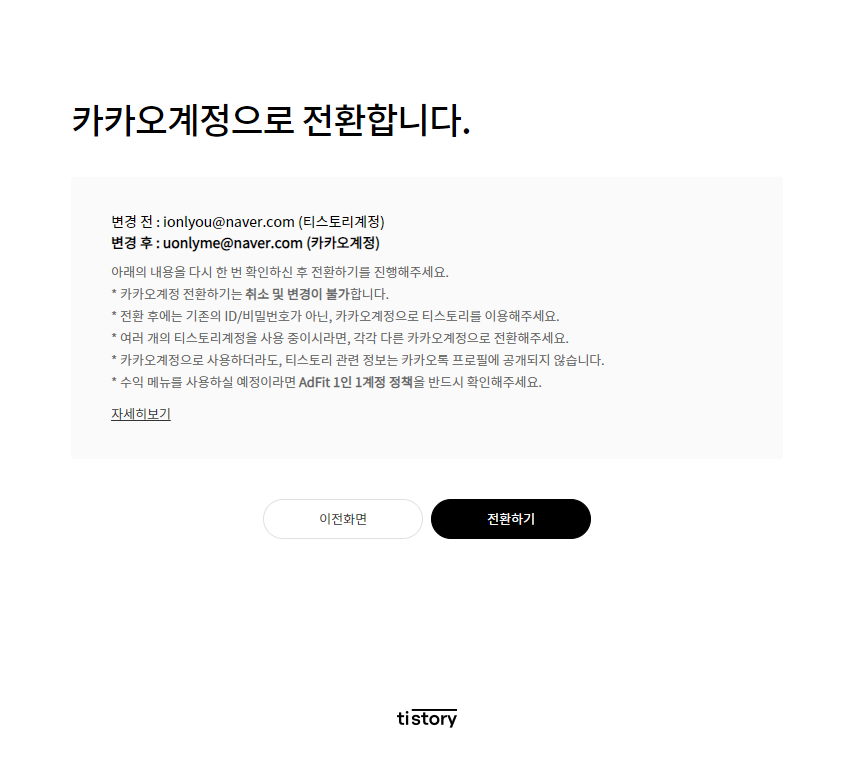 티스토리는 카카오로 이전을 강제하고 있었다.